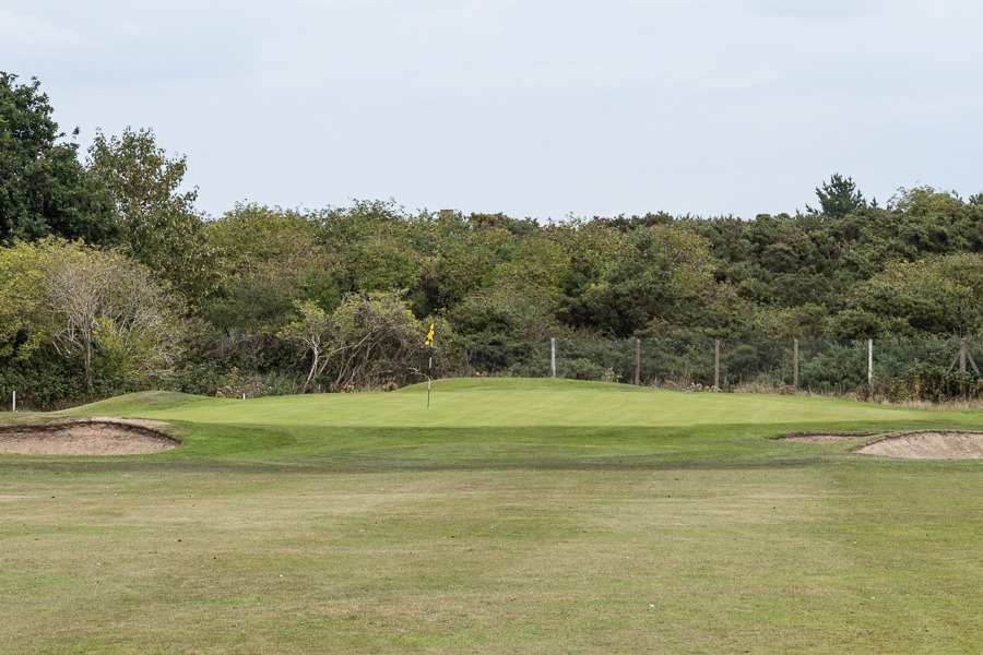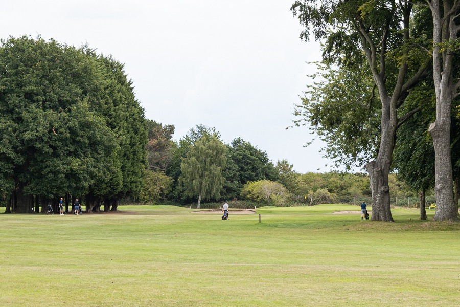A par 5 that swings away to the right into the far distance. Only a long drive, in perfect position, will avoid a faded second shot around the large copse on the corner to leave an approach. Big hitters might fancy their chances of getting there in 2 but you’ll need to avoid the numerous greenside bunkers and a ditch to the right to achieve your dream.